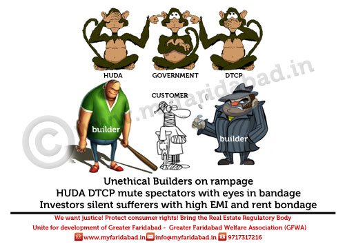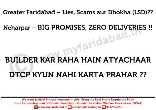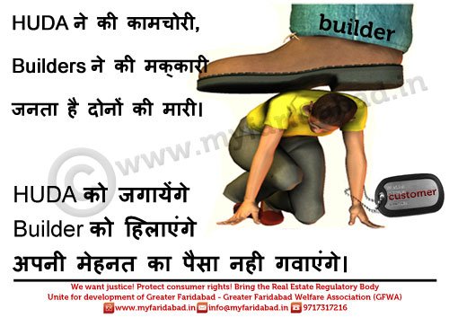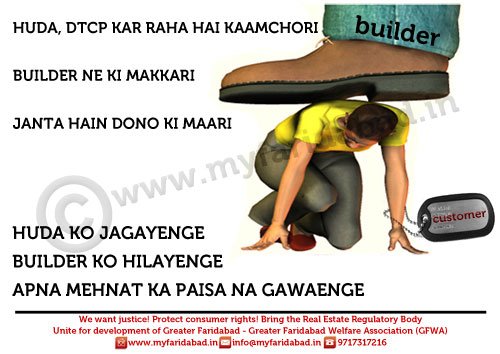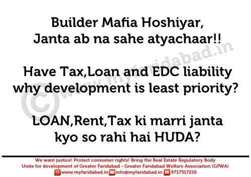 Photo Gallery - MyFaridabad Community Portal - Slogans and Placards against HUDA and Faridabad Neharpar builders