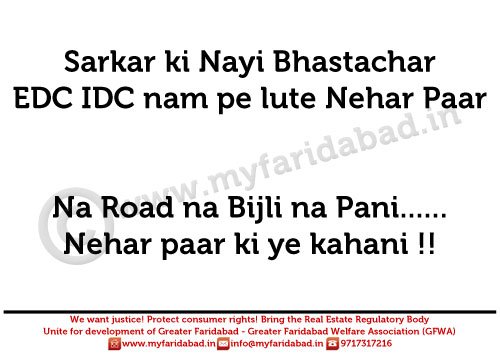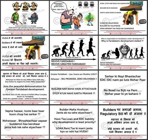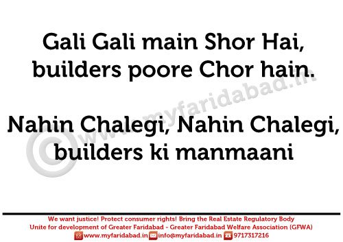 Slogans and Placards used during protest against HUDA and Faridabad Neharpar builders